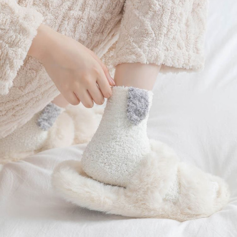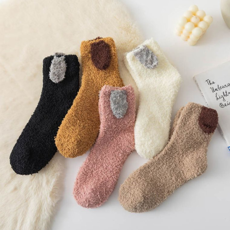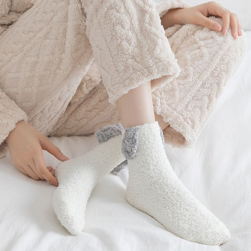 • 일본 3D 토끼 귀 산호 벨벳 양말 여자 집 반 벨벳 바닥 양말